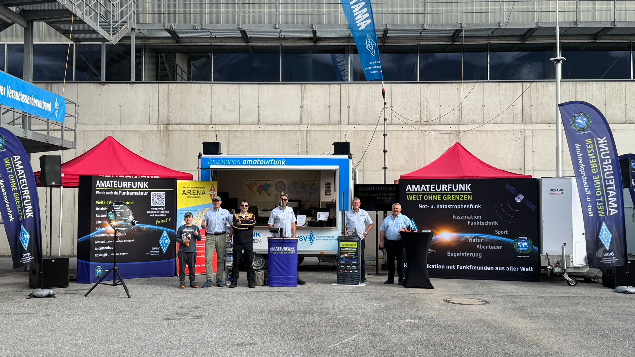 Großer Dank gebührt allen ehrenamtlichen Helferinnen und Helfern, die mit ihrem Einsatz diesen professionellen Auftritt ermöglicht haben. Besonderer Dank ergeht an ÖVSV-Präsident Michael Kastelic, OE1MCU, sowie an AMRS-Präsident Martin Engel, OE3EMC, für ihre großzügige Unterstützung, ohne dieser hätten wir das nicht umsetzen können.