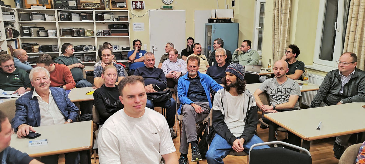 Bereits um etwa 17:30 waren die ersten Besucher im Clublokal. nach 18:00 füllte sich der Lehrsaal. Diverse Verständnis-Fagen zu den Prüfungsthemen starteten den Abend. Der Raum war gut gefüllt und Arnold OE1IAH diskutierte die gestellten Fragen. Gegen 19:00 mussten weitere Sitzgelegenheiten in den Raum gebracht werden, es wurde richtig eng. Die Teilnehmerliste hat 32 Einträge, beim Durchzählen waren über 40 Personen im Raum.